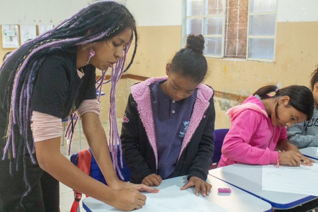 “Quando um aluno faz um autorretrato, por exemplo, ele mostra como se enxerga. E quando ele gosta do resultado, automaticamente está dizendo que gosta de si mesmo. Levar arte ao quilombo é também reconhecer que eles são importantes e merecem que esses eventos aconteçam dentro da própria comunidade”, comenta.