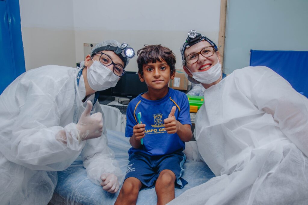 Com o objetivo de ampliar o acesso ao atendimento odontológico em todo o país, surgiu o Projeto Criança Sorridente, estratégia do Ministério da Saúde voltada ao enfrentamento da cárie dentária na infância. Em Campo Grande, a mobilização é coordenada pela Sesau, por meio da Gerência da Rede de Atenção à Saúde Bucal, em parceria com o Programa Saúde na Escola (PSE).