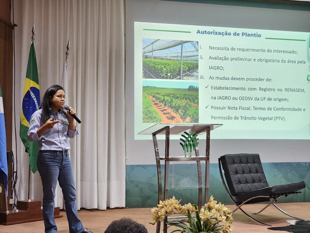 As ações de defesa fitossanitárias da Iagro no setor de citricultura foram destacadas na palestra da gerente de Inspeção e Defesa Sanitária Glaucy Ortiz, que falou sobre a nova legislação estadual que visa garantir a segurança sanitária dos pomares do Estado.
