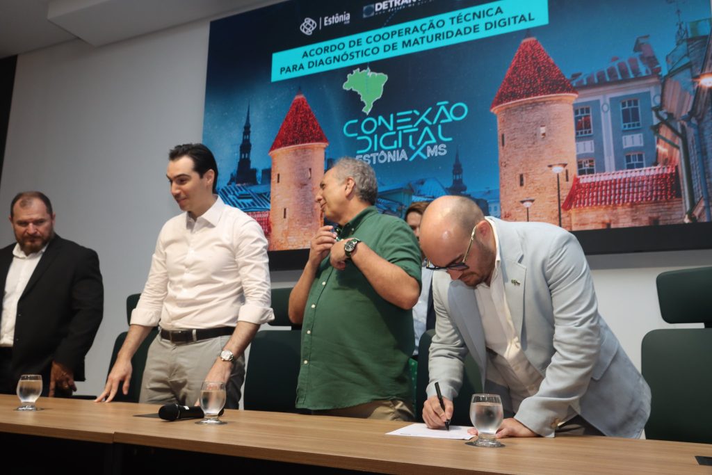 Nesta sexta-feira (22) o Detran-MS (Departamento Estadual de Trânsito de Mato Grosso do Sul) assinou um Acordo de Cooperação Técnica com o Estônia Hub visando realizar um diagnóstico de maturidade digital no órgão, identificar potencialidades e lacunas no modelo de implementação de governança digital. O acordo foi assinado durante o evento Conexão Estônia – MS, voltado a técnicos da área de trânsito que recebeu palestras de especialistas da Estônia e do Brasil.