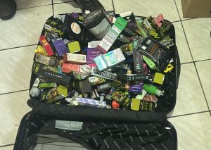 Foram apreendidos mais de 3 mil cigarros eletrônicos, 730 acessórios para cigarros eletrônicos, 520 frascos de essências, 239 fumos saborizados e 65 caixas de papel de seda importados sem as devidas informações legais.