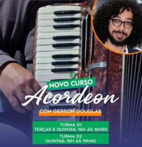 A Secretaria Municipal de Cultura e Turismo (Sectur) está com inscrições abertas para um curso gratuito de acordeon, que será ministrado pelo renomado músico e professor Gerson Douglas. Com uma carreira marcada por passagens por grupos como Tradição e parcerias com artistas de renome, como Michel Teló, Gerson traz sua expertise para ensinar o instrumento em aulas práticas e dinâmicas.