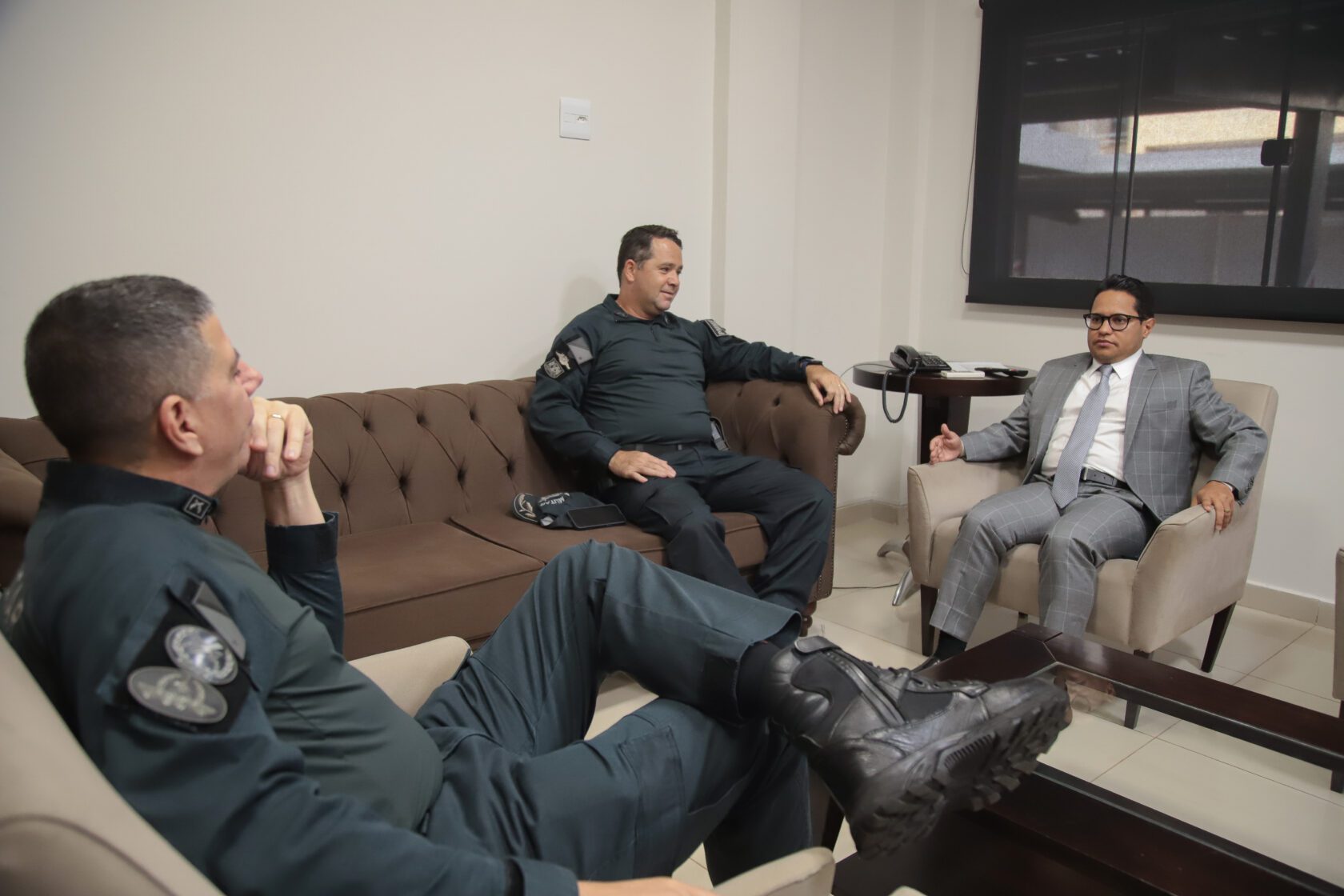 A segurança pública de Campo Grande é uma questão que está na pauta de debates nesta Legislatura. Nesta terça-feira (4), o presidente da Câmara Municipal, vereador Epaminondas Neto, o Papy, recebeu o ex-comandante do Batalhão de Polícia Militar de Trânsito (BPMTran), Coronel Élcio Almeida, e o comandante do 9º BPM (Batalhão da Polícia Militar), tenente-coronel Guilherme Dantas Lopes.