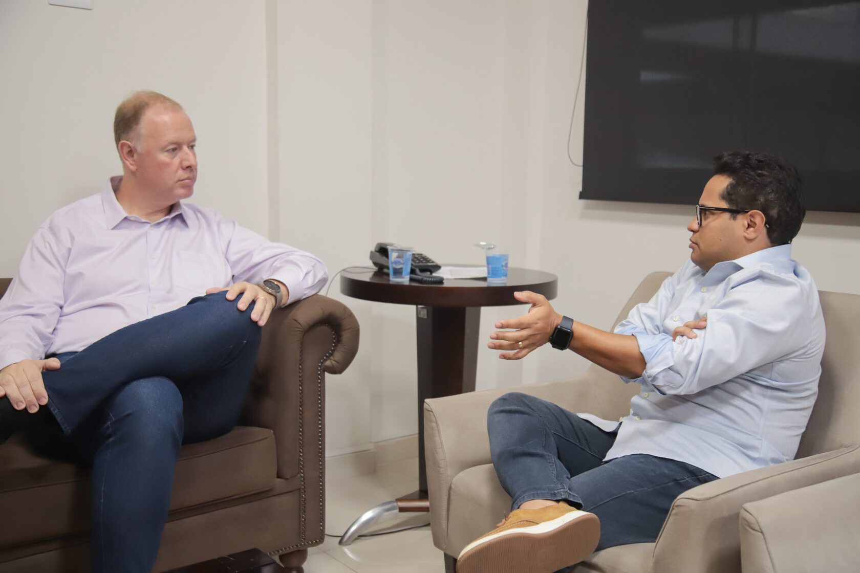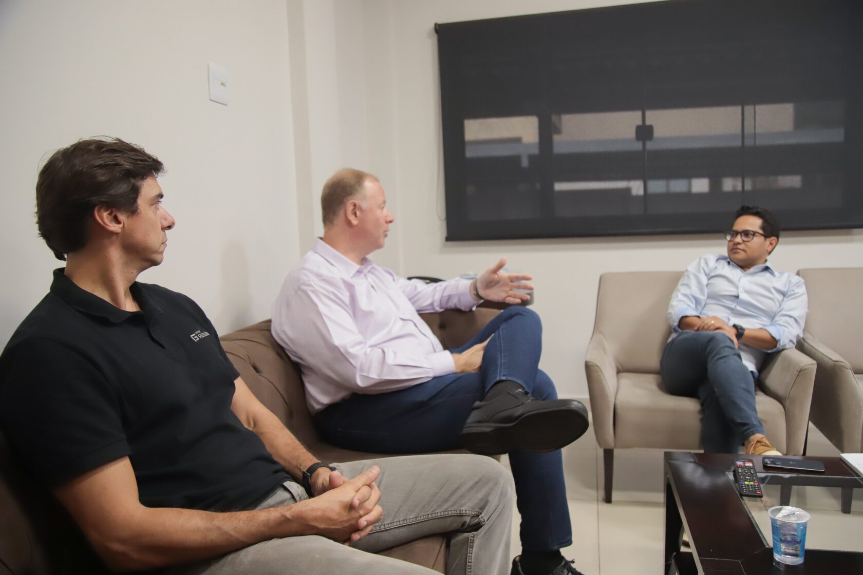 Com foco no desenvolvimento econômico de Campo Grande, o vereador Epaminondas Neto, o Papy, presidente da Câmara Municipal, recebeu o presidente do Sindha/MS (Sindicato Empresarial de Hotelaria e Alimentação de Mato Grosso do Sul), Juliano Wertheimer, e o presidente da Abrasel/MS (Associação Brasileira de Bares e Restaurantes), João Francisco Denardi, nesta terça-feira (11). Melhorias no setor de bares e restaurantes, além de renovação de termo de cooperação com a Casa de Leis foram debatidas no encontro.