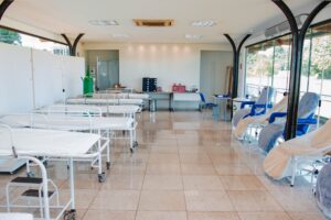 #PraTodosVerem : Na capa da matéria há uma foto da área interna do posto médico montado pela Sesau na Esplanada Ferroviária para o atendimento aos foliões, durante o Carnaval de Campo Grande 2025.
