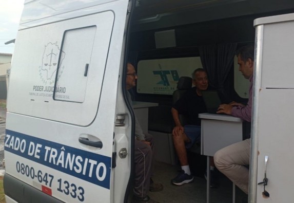 Após a primeira audiência no local, os processos são concluídos com a atuação do juiz titular da 9ª Vara do Juizado Especial de Campo Grande (Juizado de Trânsito), Djailson de Souza, junto de seus assessores, do assistente de gabinete e dos servidores que trabalham no cartório.