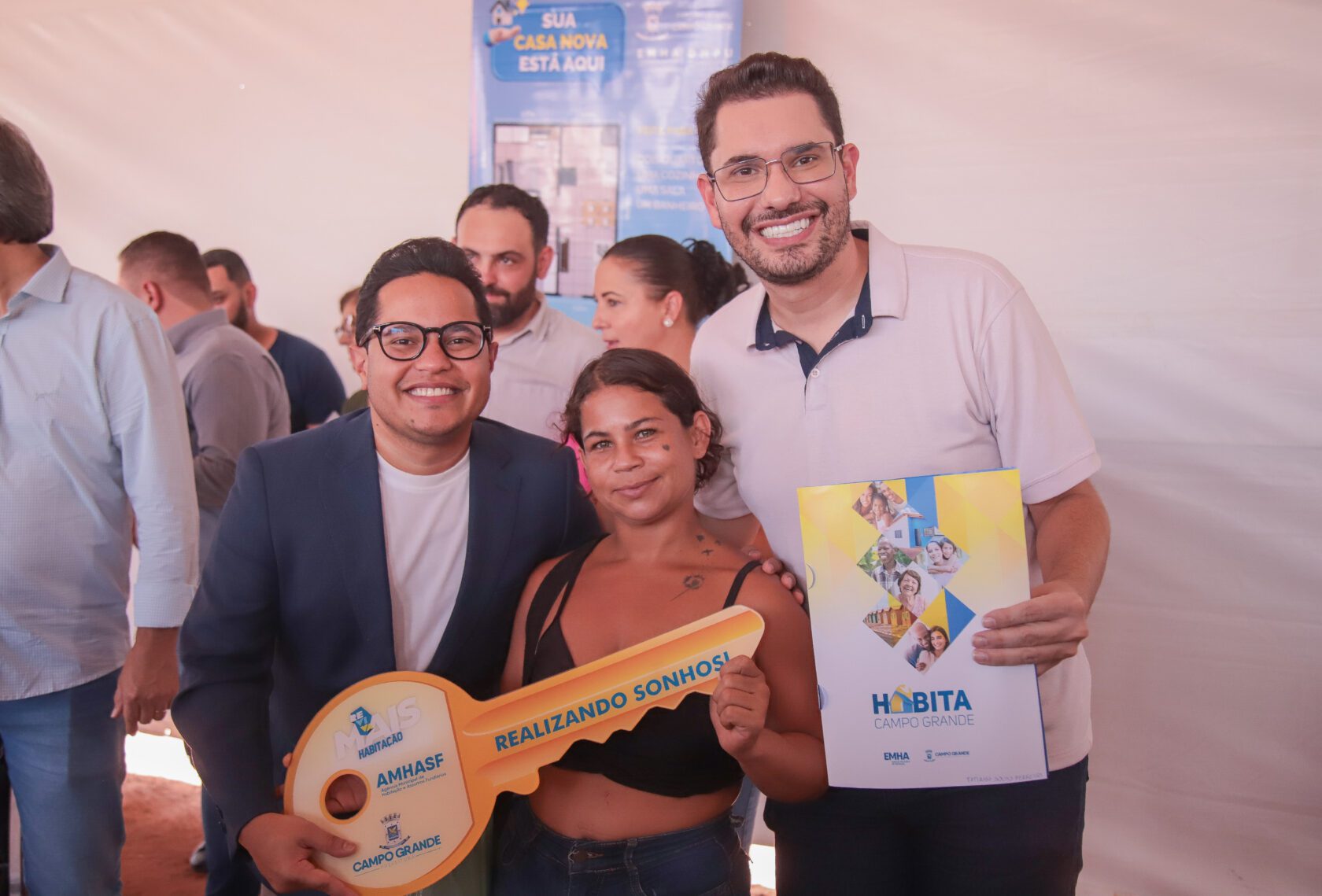 O presidente da Câmara Municipal, vereador Epaminondas Vicente Neto, o Papy, e a prefeita de Campo Grande, Adriane Lopes, entregaram nesta segunda-feira (10) 24 casas para 36 famílias da comunidade Mandela, vítimas de um incêndio em novembro de 2023. As moradias populares foram construídas no loteamento Iguatemi II, na região do bairro Nova Lima.