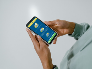 #PraTodosVerem : Na capa da matéria há uma foto que mostra apenas as mãos de um homem, segurando um smartphone, enquanto na tela do aparelho é possível ver que está com um navegador aberto na página para votação no orçamento comunitário.