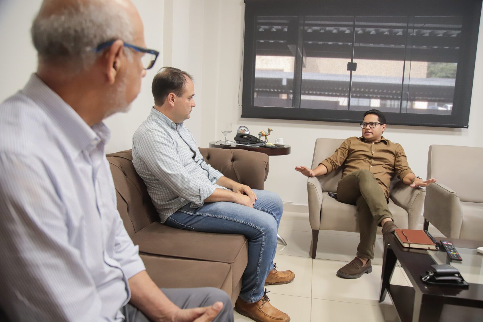 O vereador Epaminondas Neto, o Papy, presidente da Câmara Municipal de Campo Grande, recebeu o presidente da Associação Comercial e Industrial de Campo Grande, Renato Paniago, e o superintendente Ulisses Conceição Filho, na manhã desta segunda-feira, dia 17. Na visita, debateram melhorias para o comércio, principalmente do Centro da cidade, e para o setor industrial. Os vereadores já analisam como aperfeiçoar as legislações para incentivar investimentos.
