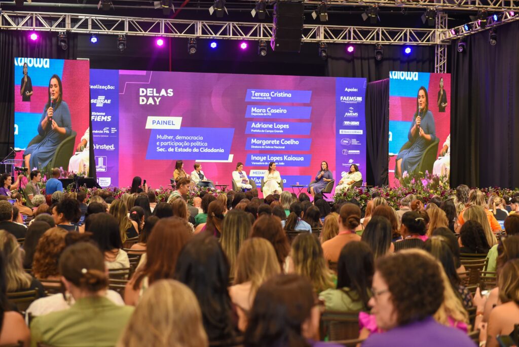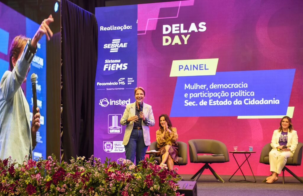 No palco do Delas Day, evento realizado nos dias 26 e 27 de março no Bosque Expo e que faz parte das comemorações do Mês da Mulher, a Prefeitura de Campo Grande marcou presença em Plenária na tarde desta quinta-feira (27). No painel “Mulher, democracia e participação política”, promovido pela Secretaria de Estado da Cidadania, a prefeita Adriane Lopes representou o Executivo, partilhou experiências e levou mensagem de incentivo às mulheres do Estado.