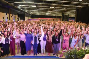 #A foto de capa e fotos internas mostram as imagens do Delas Day. A foto de capa todas as mulheres estão na plateia com as mãos para cima e as fotos internas são das mulheres durante o talk show.