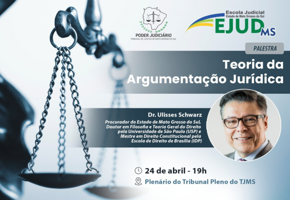 A Escola Judicial do Estado de Mato Grosso do Sul (Ejud-MS) realizará no dia 24 de abril, às 19 horas, a palestra Teoria da Argumentação Jurídica, ministrada pelo Procurador do Estado de Mato Grosso do Sul, Ulisses Schwarz Viana. A formação é destinada aos magistrados, servidores e demais operadores do Direito e objetiva a compreensão e aplicação do tema em contextos práticos.