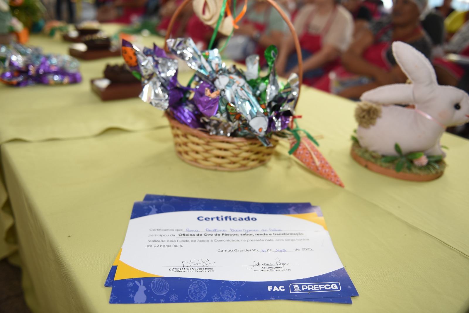 “Esse curso foi especial pois conseguimos levar essa capacitação para todas as regiões de Campo Grande e proporcionar aos participantes técnicas para a confecção de ovos de Páscoa artesanais, uma oportunidade valiosa para quem deseja aprimorar habilidades ou até mesmo iniciar um novo negócio”, explica Adir Diniz, coordenadora Geral do FAC.