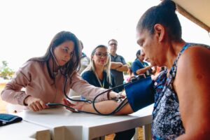 “Queríamos uma ação que nos conectasse com a comunidade, tirando os profissionais da rotina burocrática e levando saúde para onde as pessoas estão. E o resultado foi esse. ‘Sorrisos, acolhimento e serviços importantes oferecidos’”, explicou Bruna Carolina de Oliveira, agente comunitária de Saúde da USF Nova Bahia e coordenadora do Conselho Distrital do Prosa.
