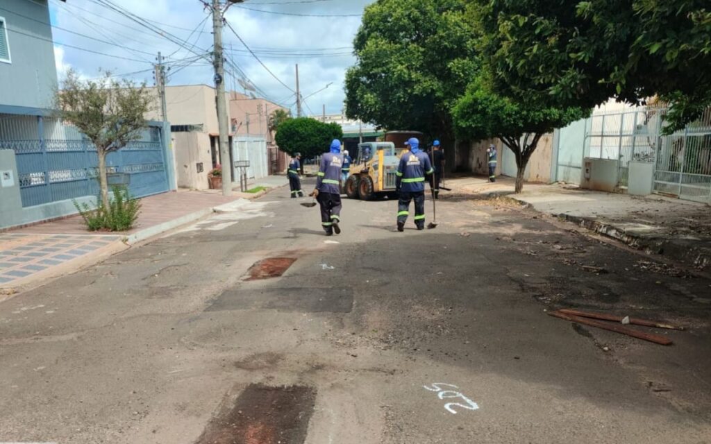 As equipes têm aproveitado quando a chuva da trégua para avançar com o trabalho de tapar buracos nas vias pavimentadas da cidade.