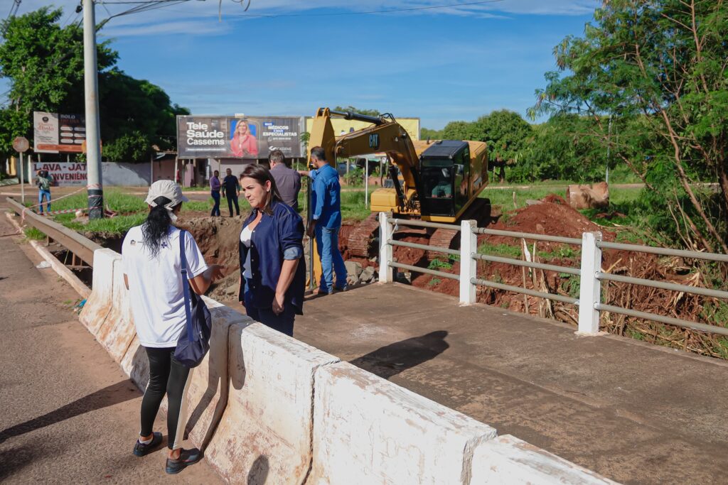 No local, uma das erosões ocorreu ao lado da ponte, afetando inclusive parte da calçada. A outra foi registrada na Avenida Georges Chaia, no sentido Oeste-Leste, antes do cruzamento com a Rua da Divisão. A Secretaria Municipal de Infraestrutura e Serviços Públicos (Sisep) está utilizando pedras para reforçar o aterro e garantir a estabilidade da estrutura – procedimento semelhante ao adotado na recomposição da Avenida Filinto Muller, em frente ao Lago do Amor, após o temporal de março deste ano.
