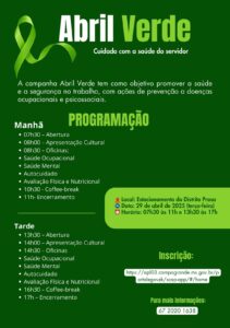 Com oficinas voltadas à saúde ocupacional, saúde mental, autocuidado e avaliação física e nutricional, o Abril Verde organizado pela GERSAU busca conscientizar os servidores sobre a importância de práticas seguras e saudáveis no ambiente de trabalho. Para a enfermeira do trabalho e instrutora do curso, Esthefani Guimarães Uchôa Prado, a ação reforça o compromisso da gestão com o cuidado integral ao servidor.