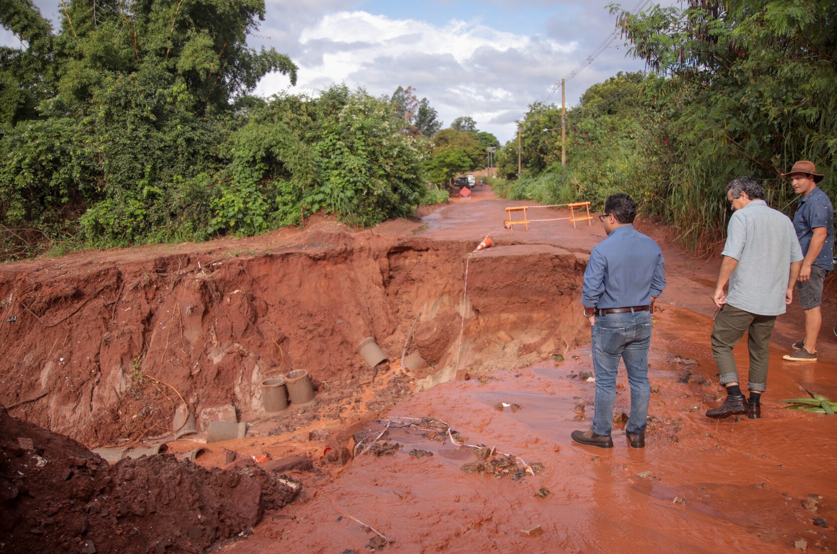 Marcelo Miglioli pontuou que assim que as chuvas darem uma trégua na Capital serão iniciados os trabalhos de aterramento da erosão que comprometeu o tráfego de veículos no Chácara dos Poderes. “Não havendo chuva, vamos trabalhar já no fim de semana aqui. É uma situação que não dá pra fazer nada com chuva. Temos que recompor o aterro”, esclareceu.