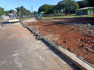 Na Avenida Filinto Müller, em frente ao Lago do Amor, as equipes da Sisep intensificaram os trabalhos de recomposição da calçada e do meio-fio. No temporal do último dia 18 de março, o lago voltou a transbordar, e a força da água arrastou parte do aterro nas proximidades do extravasor. Para conter novos desmoronamentos, foram colocadas pedras de grande porte na área afetada. A solução surtiu o efeito esperado: mesmo com o novo transbordamento ocorrido durante a chuva da semana passada, a estrutura construída resistiu sem danos, mesmo antes da aplicação do concreto.