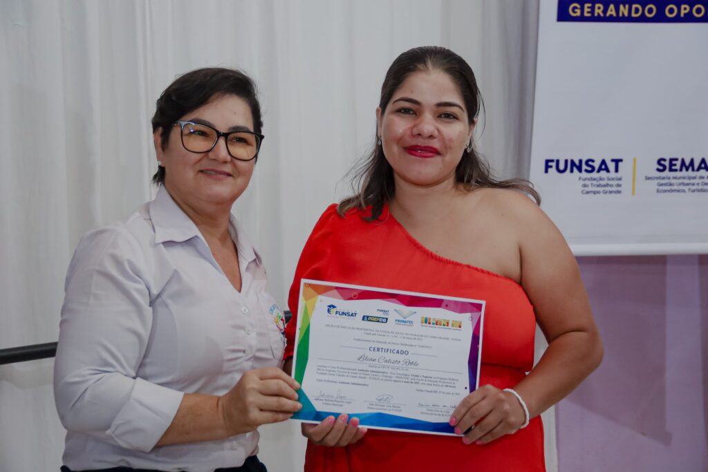 A noite desta quarta-feira (7) foi de formatura do programa “Mulheres Mil” no Bairro Aero Rancho, região do Anhanduizinho. Graças à conclusão de 100 alunas no curso de “Assistente Administrativa”, promovido dentro de uma sala de aula no ACIESP (Instituto de Apoio e Capacitação e Instrução de Economia Solidária do Povo).