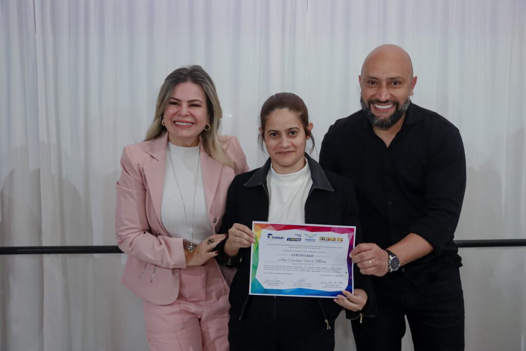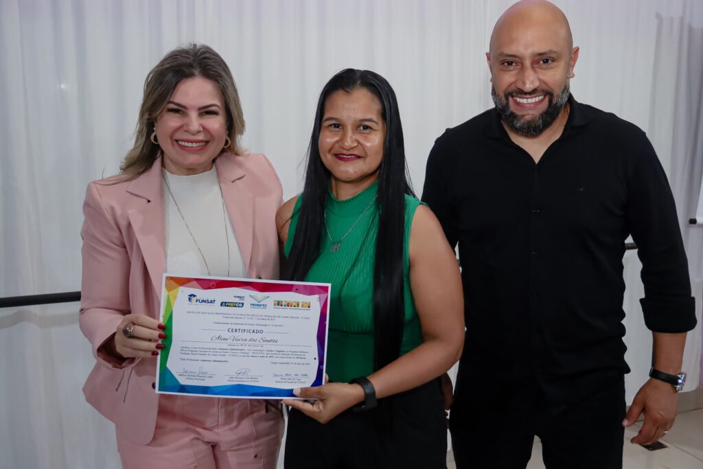 “A Prefeitura, junto com a FUNSAT, a SAS, a Secretaria Executiva da Mulher e tantas outras pastas, promove uma variedade de capacitações. Vocês podem, por exemplo, combinar o curso de administrativo com outro e se tornarem empreendedoras. Nesta semana, inauguramos a Sala da Mulher Empreendedora dentro da Semu — a primeira do Centro-Oeste e a terceira do Brasil. Um espaço de apoio para quem quer abrir o próprio negócio. Se você, por exemplo, faz design de sobrancelhas, lá poderá aprender sobre gestão financeira, marketing, formalização e tudo o que precisa para empreender com segurança. Hoje, vocês têm esse ponto de apoio.”