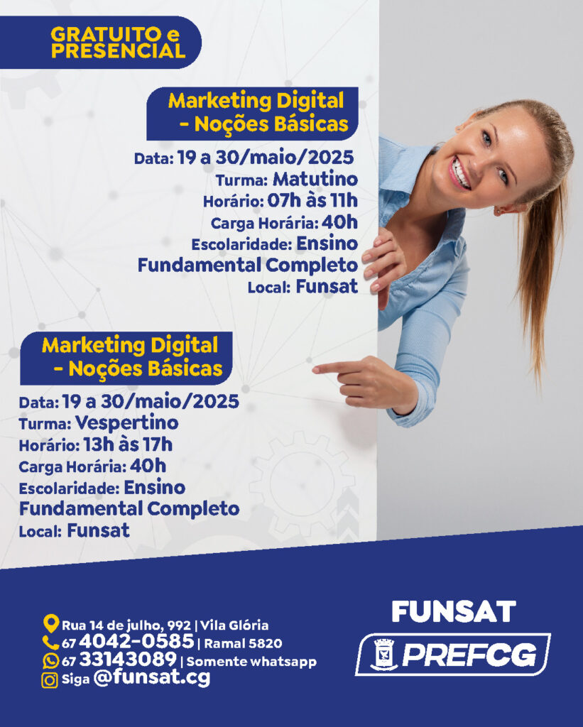 Para mais informações, acesse no Instagram @funsat.cg, entre em contato no telefone (67) 4042-0585/5820 ou pelo WhatsApp (67) 3314-3089.