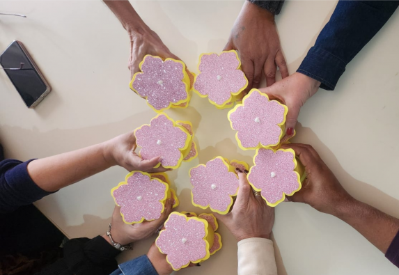 A doação teve um destino especial: as mulheres atendidas pelo Centro utilizaram o material em oficinas de grupo com foco em saúde mental, confeccionando lembrancinhas para o Dia das Mães. Entre os itens produzidos estavam porta-joias personalizados. A iniciativa contou ainda com o apoio do Instituto do Câncer, parceiro que contribuiu com a doação de escovas e doces, enriquecendo os kits entregues às homenageadas.