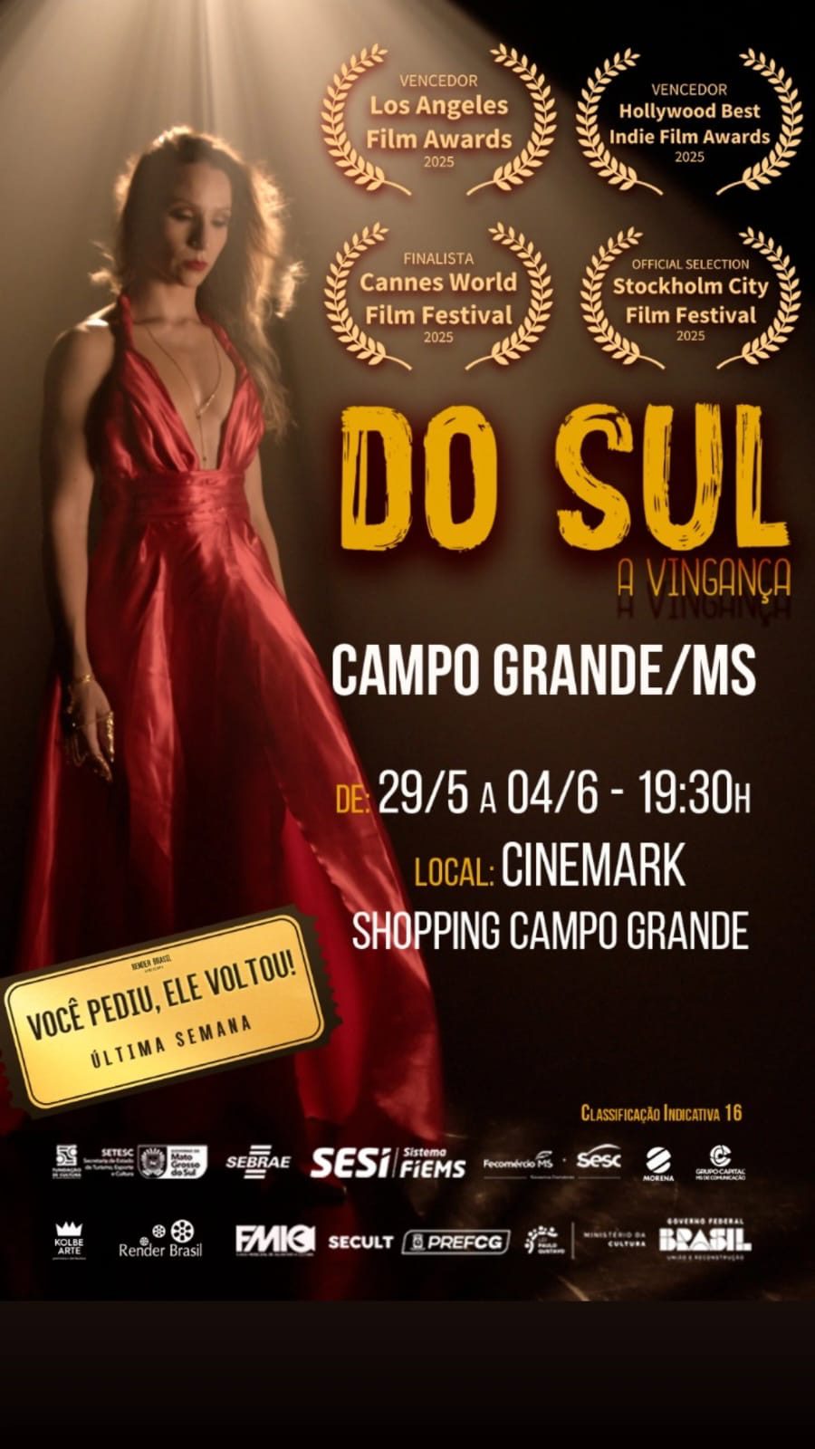 Dirigido por Fábio Flecha e produzido pela Render Brasil, com produção executiva de Tânia Sozza, o longa conta também com atuações marcantes de Cleber Dias e Espedito Di Montebranco. “Do Sul, A Vingança” é o primeiro filme de ficção inteiramente produzido em Mato Grosso do Sul a alcançar o circuito comercial brasileiro, tornando-se um marco para o audiovisual do estado.