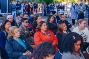 A apresentação artística da bailarina Luiza Maria Almeida Rosa, integrante do projeto “Onde nasce a fonte do ser?”, trouxe leveza e sensibilidade ao evento. O projeto, financiado pela Lei Paulo Gustavo, foi uma forma de reconhecer os profissionais da saúde que estiveram na linha de frente da pandemia.
