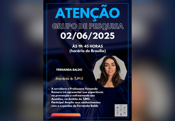 A Escola Nacional de Formação e Aperfeiçoamento de Magistrados (Enfam) realiza nesta segunda-feira, dia 2 de junho, a partir das 18h45 (horário local), mais uma edição do Grupo de Pesquisa em “Gestão de Pessoas e Novas Tecnologias no Sistema de Justiça: Desafios, Soft Skills e Inovação”, coordenado pela juíza Luiza Vieira Sá de Figueiredo, da comarca de Campo Grande, e abordará a importância da gestão respeitosa e consciente como ferramenta de prevenção ao assédio e à discriminação no ambiente de trabalho. O encontro terá a participação da servidora do TJMS e professora Fernanda Baldo Romero, que compartilhará sua experiência no desenvolvimento de práticas institucionais voltadas à prevenção e enfrentamento dessas condutas dentro da instituição.