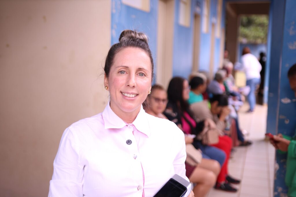 A paciente Eliane Pereira de Lima, que trabalha como secretária, é diabética e sabe bem a importância de cuidar da saúde, principalmente dos olhos. Ela esteve entre os 400 pacientes atendidos por meio da ação conjunta entre Sesau e SES, realizada por meio do Telessaúde. O objetivo da iniciativa é fortalecer a Atenção Primária, com rastreio de pacientes realizado diretamente nas unidades de saúde do município.