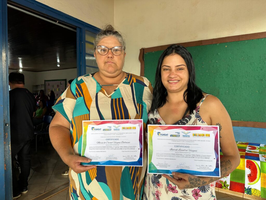 A tarde da quarta-feira (04) foi de finalização de mais um curso do “Mulheres Mil”, no Centro de Referência em Assistência Social (CRAS) da Vila Popular. O evento certificou 75 alunas de uma turma iniciada em abril, na capacitação de auxiliar administrativo com 160 horas/aula, apresentada pela Escola Funsat (Fundação Social do Trabalho).