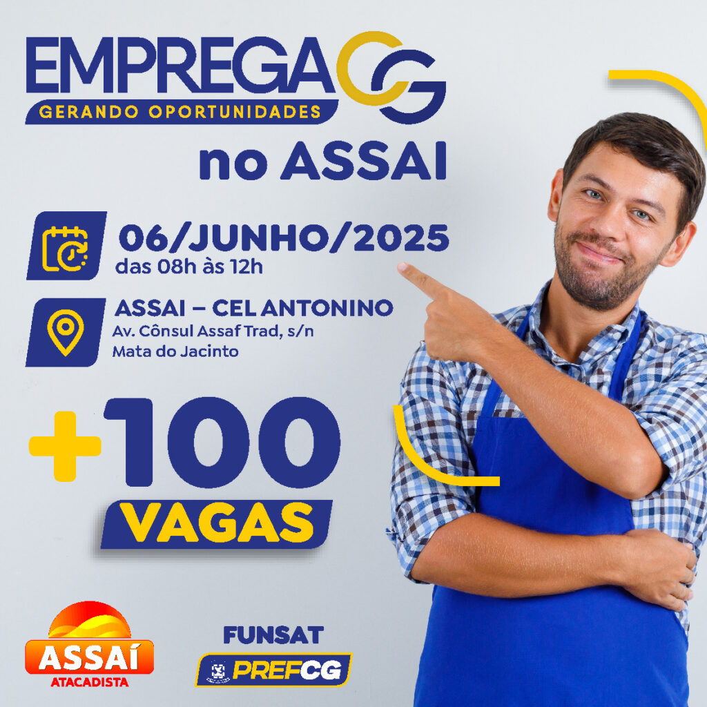 O próximo “Emprega CG” está agendado para o dia 6 de junho, com a oferta de 100 vagas para contratações na rede Assaí Atacadista. Evento, que seleciona em 13 atividades profissionais, e será promovido na loja do grupo, situada na Av. Cônsul Assaf Trad, s/n, na Mata do Jacinto. Mais informações pelo Instagram, no @funsat.cg ou no telefone (67) 4042-0585/Ramal 5800.
