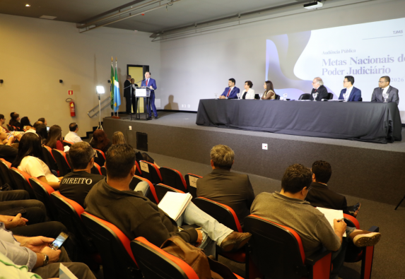Em mais uma etapa do processo participativo para elaboração das Metas Nacionais do Judiciário para 2026, o Tribunal de Justiça de Mato Grosso do Sul realizou na noite de segunda-feira, dia 16 de junho, na Faculdade Insted, em Campo Grande, uma audiência pública destinada à sociedade civil e demais instituições para apresentar dados, debater estratégias e coletar sugestões e demandas externas que contribuam para a definição de metas alinhadas aos anseios sociais.