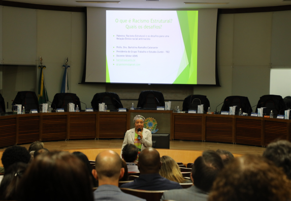 Na tarde desta terça-feira, dia 17 de junho, o plenário do Tribunal Regional Eleitoral de Mato Grosso do Sul (TRE-MS) foi palco de um dos temas sensíveis da sociedade brasileira: o racismo estrutural. A convidada para conduzir a discussão foi a professora doutora Bartolina Ramalho Catanante, que apresentou a conferência intitulada “O que é o racismo estrutural? Quais os desafios?”.