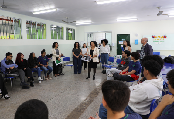 Na manhã desta quinta-feira, dia 26 de junho, o Tribunal de Justiça de Mato Grosso do Sul (TJMS), por meio da Escola Judicial (Ejud-MS) e da Assessoria de Planejamento, com o apoio da Direção-Geral, realizou o workshop “Meu Lugar: Identidade, Racismo e Justiça” para cerca de 20 alunos do 3º ano do Ensino Médio da Escola Estadual Professora Clarinda Mendes de Aquino, em Campo Grande. A atividade, que se repetirá em outra turma amanhã (27), busca sensibilizar os estudantes sobre os impactos do racismo estrutural e fortalecer seu papel como agentes transformadores.