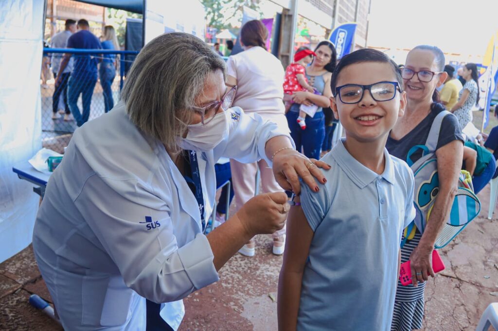 Com o neto de 9 anos acompanhando, Vilce Pereira ainda o levou para atualizar a caderneta de vacinação na tenda da Secretaria Municipal de Saúde (Sesau). “Ele fez a vacina da gripe e HPV. Muito importante ter a vacinação em dia.”