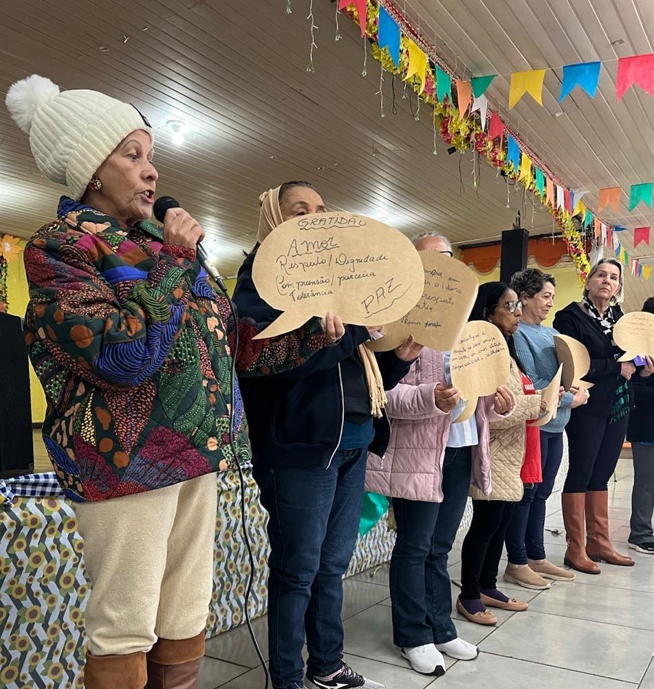 Durante o encontro, que reuniu pelo menos 500 idosos no CCI, usuários que frequentam o SCFV oferecido pela Rede de Assistência Social e por entidades cofinanciadas destacaram as ações e projetos voltados à população idosa, que promovem não apenas o bem-estar físico e a autonomia, mas também o fortalecimento do pensamento crítico.