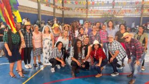 Este ano, as celebrações ganharam um toque especial ao mesclar danças tradicionais, como a quadrilha, com coreografias atuais inspiradas no funk, criando uma atmosfera vibrante e inclusiva entre os usuários de todas as faixas etárias. Foi assim na Festa Julina do Cras Aero Rancho, realizada nesta sexta-feira (18) e que contou com a presença da prefeita Adriane Lopes e da secretária de Assistência Social e Cidadania, Camilla Nascimento, além da secretária-adjunta Inês Mongenout e superintendentes da SAS.
