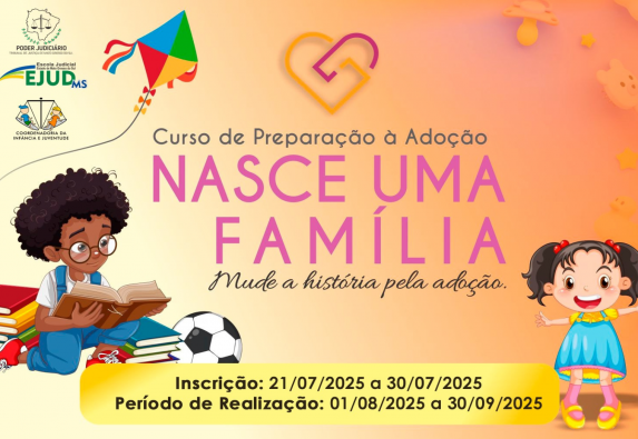 O Tribunal de Justiça de Mato Grosso do Sul (TJMS), por meio da Escola Judicial de Mato Grosso do Sul (Ejud-MS), em parceria com a Coordenadoria da Infância e Juventude, promoverá o curso “Preparação à Adoção – Nasce uma Família”. A formação, em modalidade EaD, tem como objetivo, habilitar os pretendentes a adoção para o exercício de uma paternidade ou maternidade responsável.