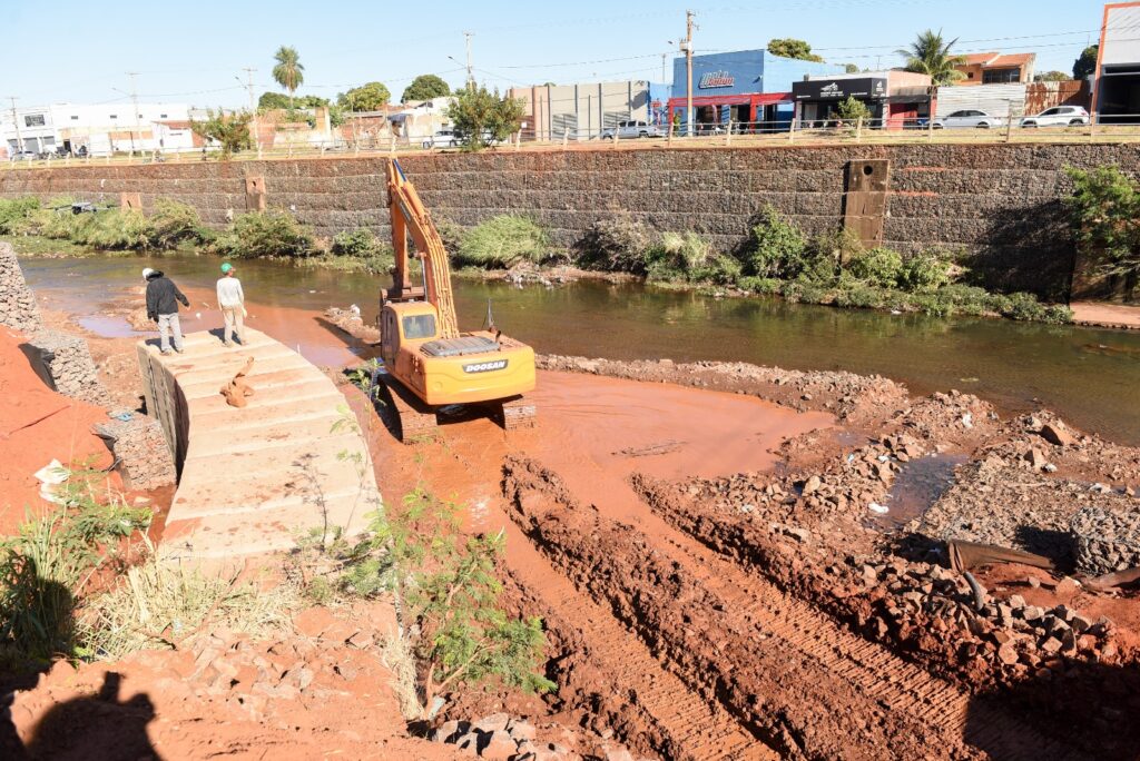 A estrutura utiliza o sistema de gabiões, que consiste na montagem manual de pedras em gaiolas metálicas para conter a erosão nas margens do Rio Anhanduí. Além da contenção, o projeto contempla recapeamento, nova sinalização e instalação de guarda-corpos ao longo do trecho.