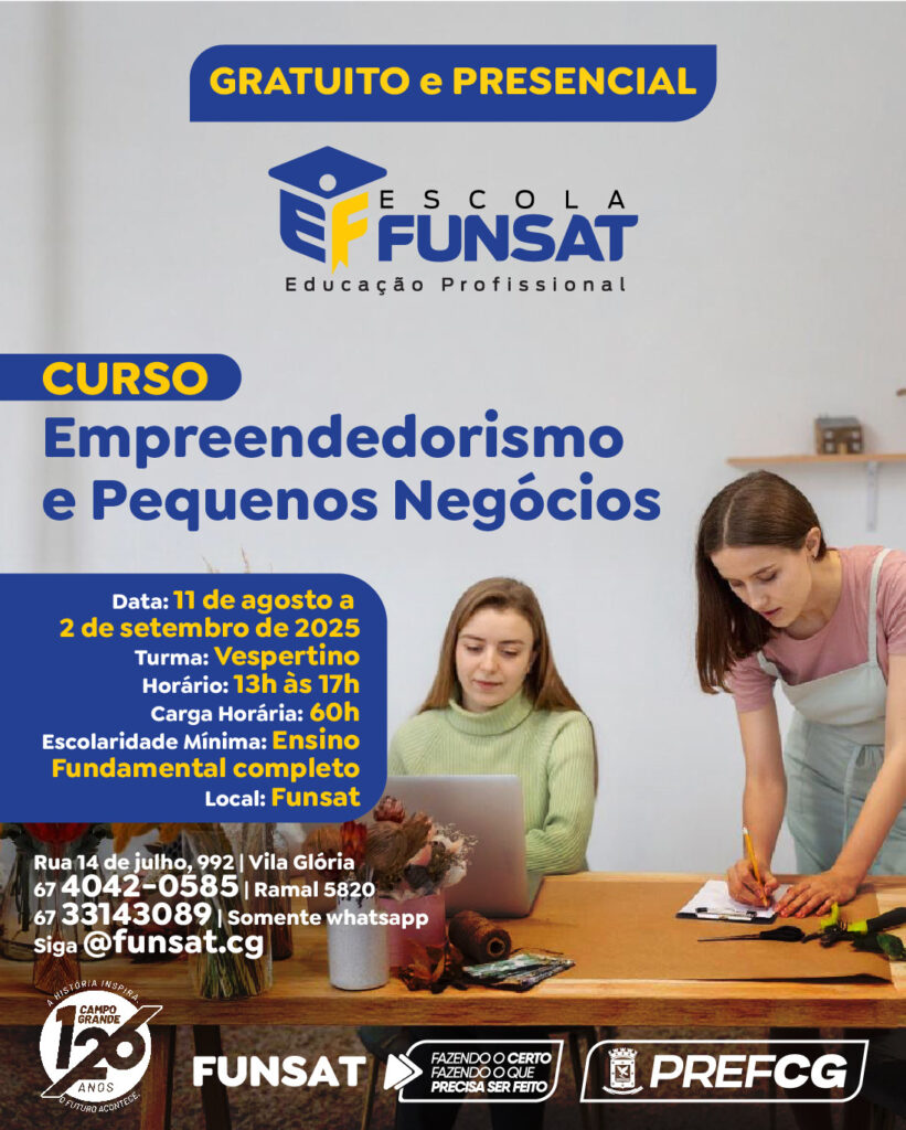 Mais informações podem ser obtidas pelo telefone (67) 4042-0585 (Ramal 5820) ou pelo WhatsApp da Escola Funsat: (67) 3314-3089.