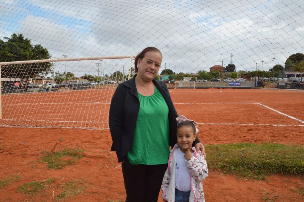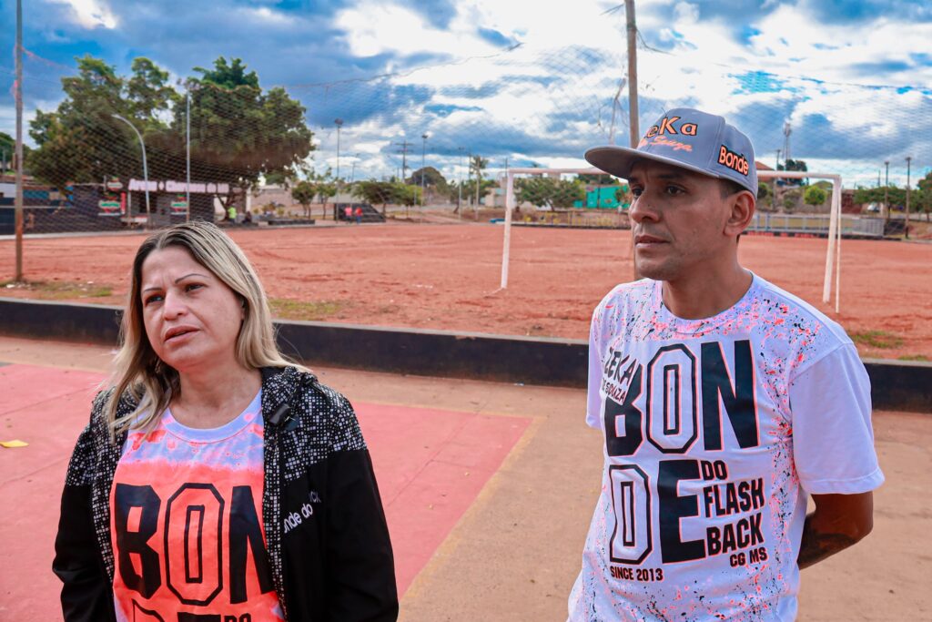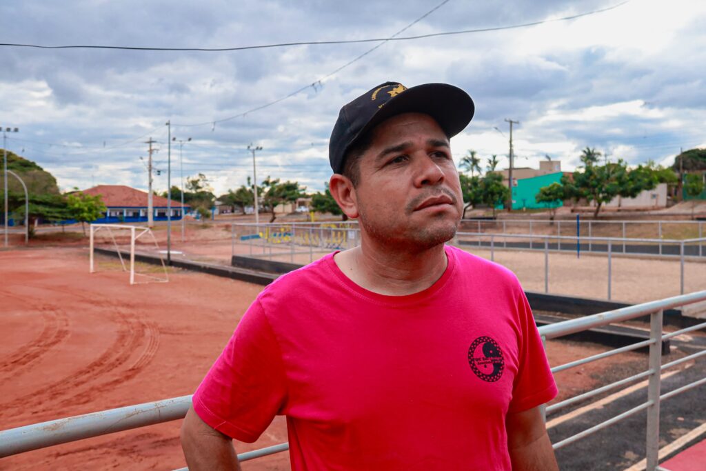 O protético e líder comunitário Antônio Marcos Bogarin, conhecido como Tony, relembra os tempos em que o espaço era um ponto de descarte irregular de lixo. “Aqui era um campo de futebol quando eu era criança. Depois virou um lixão: jogavam sofá velho, animal morto. Foram 23 anos de abandono. Quando me tornei líder comuntário do bairro, coloquei no coração que queria limpar esse campo. Comecei sozinho, depois vieram amigos como a prefeita, escolinha… Hoje é uma arena viva.”