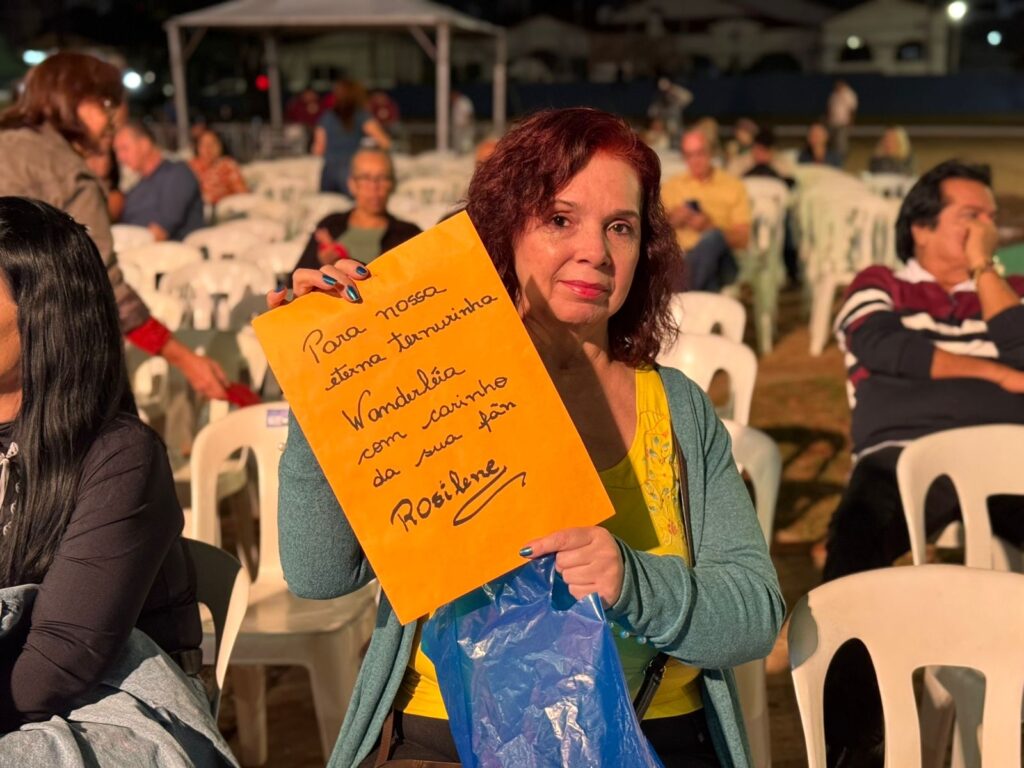 Outro momento especial foi o da fã Rosilene Leite de Almeida, 60 anos, moradora do Aero Rancho, que levou até uma carta para entregar à artista: “Desde os 17 anos sou fã dela. Vi no programa do Serginho Groisman e sonhei que ela viesse a Campo Grande. Hoje estou realizando esse sonho. Já vi shows de outros artistas aqui na Noite da Seresta, como Biafra, mas a Wanderléa é diferente. Trouxe uma carta só para dizer o quanto admiro ela.”