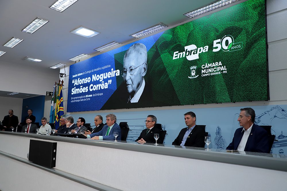 Os avanços conquistados pela Embrapa Gado de Corte ao longo de 50 anos, com novas tecnologias principalmente para a pecuária, foram enfatizados durante solenidade na Câmara Municipal de Campo Grande, na noite de segunda-feira, dia 18. No evento, 22 pessoas foram homenageadas com a Medalha Legislativa “Afonso Nogueira Simões Corrêa”. A sessão solene foi proposta pelo vereador Dr. Jamal.