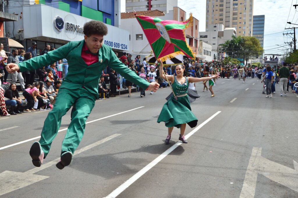 O desfile começou ainda nas primeiras horas da manhã. Crianças empolgadas, famílias reunidas, idosos carregando lembranças de edições passadas: todos compartilhavam a expectativa de ver de perto o cortejo que reúne escolas, forças de segurança, entidades sociais e culturais. Bandeiras tremulavam ao vento, fanfarras marcavam o ritmo e grupos caracterizados transformaram a Rua 13 de Maio em um grande palco a céu aberto.