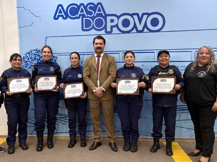 Em especial ao Agosto Lilás, mês de conscientização e combate à violência contra a mulher, o vereador Flávio Cabo Almi, presidente da Comissão Permanente de Segurança Pública da Câmara Municipal, prestou homenagem a cinco guardas civis metropolitanas que se destacam na proteção da população de Campo Grande.