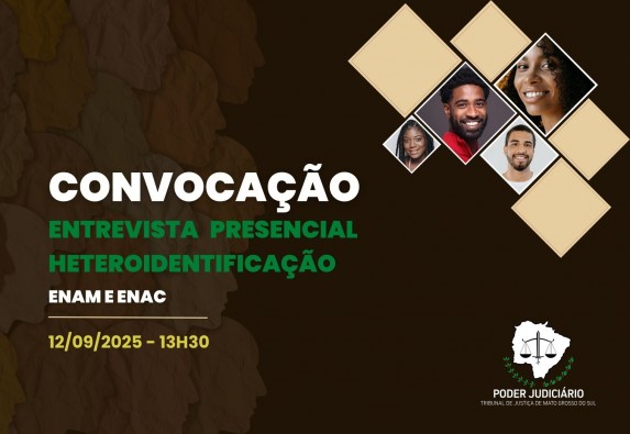 No próximo dia 12 de setembro, a partir das 13h30, será realizada no Plenário Cível do Tribunal de Justiça de Mato Grosso do Sul a sessão de entrevistas presenciais de heteroidentificação dos candidatos inscritos e autodeclarados negros para o Exame Nacional da Magistratura (Enam) e o Exame Nacional dos Cartórios (Enac).
