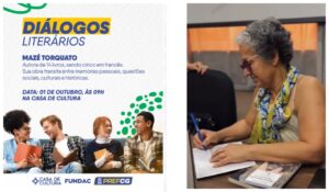 No dia 1º de outubro, às 9h, a Casa de Cultura será palco do evento “Diálogos Literários”, que terá como convidada especial a escritora, jornalista e pesquisadora Mazze Torquatto. O encontro é gratuito e aberto ao público, oferecendo à comunidade a oportunidade de dialogar com uma autora que construiu sua trajetória entre o Brasil e a França, consolidando-se como referência na divulgação da literatura brasileira no cenário internacional.