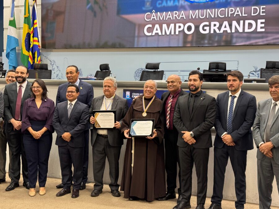 O vereador Ronilço Guerreiro entregou na manhã de hoje duas das principais honrarias da Câmara Municipal de Campo Grande a duas importantes lideranças religiosas: o arcebispo metropolitano Dom Dimas Lara Barbosa e o pároco da Paróquia Santa Clara, Frei Moacyr Malaquias Júnior. A entrega aconteceu durante a sessão da Câmara e marcou o reconhecimento público ao trabalho pastoral, social e comunitário realizado por ambos.